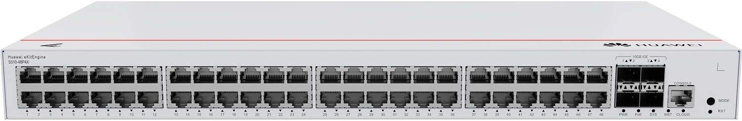 The HUAWEI eKitEngine Switch S310-48P4X is a high-performance, Layer 2+ managed switch that excels in enterprise networking environments.