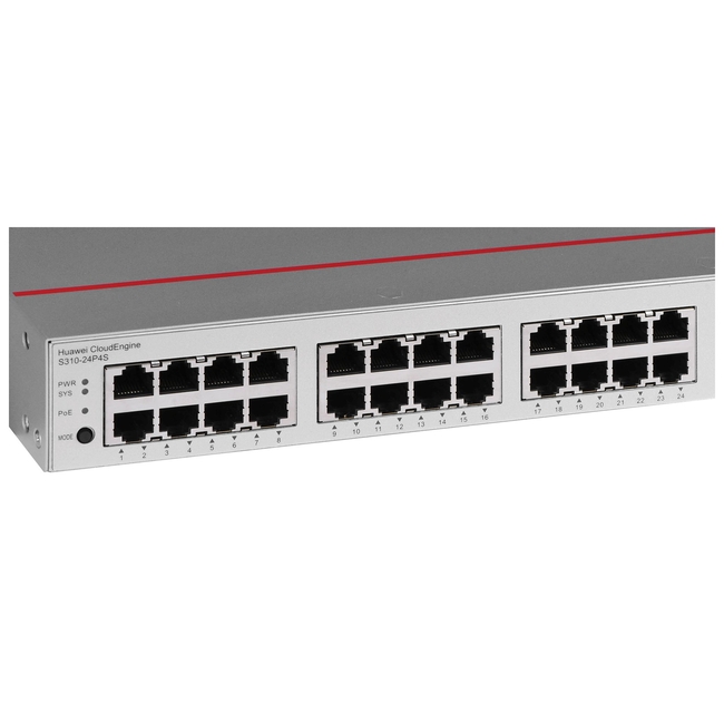 The Huawei S310-24P4S is a managed and stackable Layer 3 (L3) Gigabit Ethernet switch offering exceptional connectivity and network management features. This 1U rackmount switch is perfect for enterprise campus access and gigabit-to-the-desktop applications.