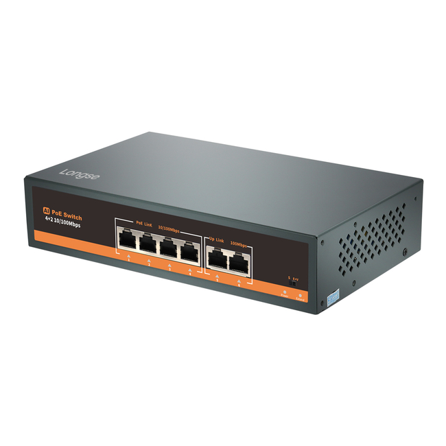 Το switch της Longse επεκτείνει το δίκτυο σας με 4x PoE LAN και 2x WAN θύρες δικτύου. Είναι ιδανικό για χρήση με συστήματα ασφαλείας, συναγερμούς, κάμερες κ.λπ.