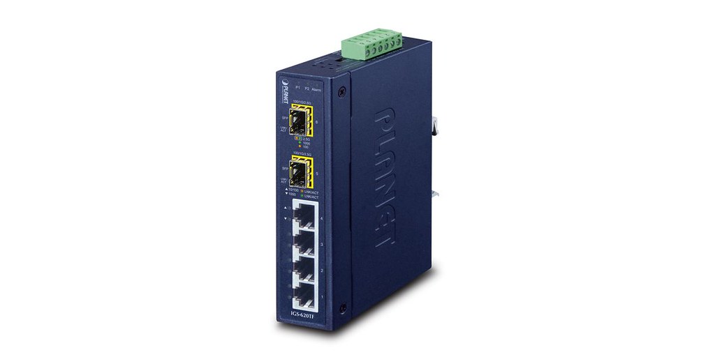 The PLANET IGS-620TF is a robust, industrial-grade 6-port Gigabit Ethernet switch tailored for demanding environments. It is engineered to offer exceptional reliability, flexibility, and durability, making it ideal for applications such as surveillance systems and secure control networks.