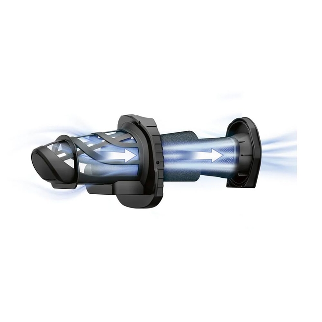 This vacuum boasts a sleek design in dark graphite, combining functionality with aesthetics.