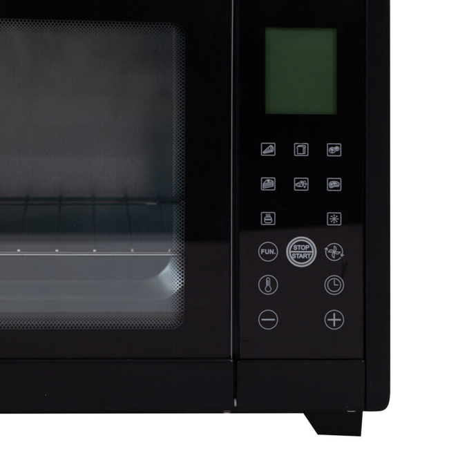 Φουρνάκι 45 λίτρων, 2000W με αέρα, σούβλα, φως και 8 προγράμματα ψησίματος για μπισκότα, ψωμί, πίτσα, μπριζόλα, κοτόπουλο, κέικ, ξεπάγωμα και διατήρηση θερμοκρασίας. Διαθέτει επίσης χρονόμετρο 180 λεπτών ώστε να ψήνετε το φαγητό σας χωρίς να έχετε το φόβο ότι θα σας καεί. Το φουρνάκι ελέγχεται εύκολα από ένα ψηφιακό πάνελ αφής και μια οθόνη LCD που φωτίζεται.