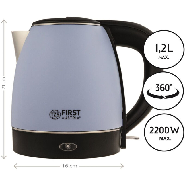 Βραστήρας 1.2 L 2200 W First Austria FA-5407-3-BU Μεταλλικός
