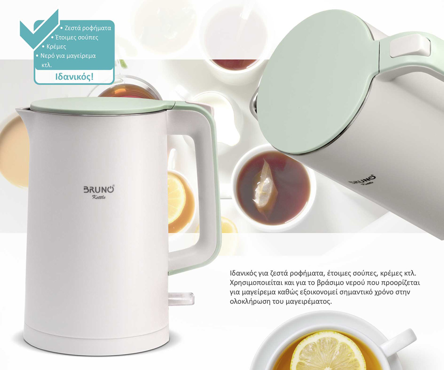Ο βραστήρας BRUNO BRN-0140 καλύπτει γρήγορα και εύκολα κάθε σας ανάγκη όπου απαιτείται ζεστό νερό για ροφήματα, έτοιμες σούπες, κρέμες κτλ. ή για μαγείρεμα και κάθε άλλη χρήση.
