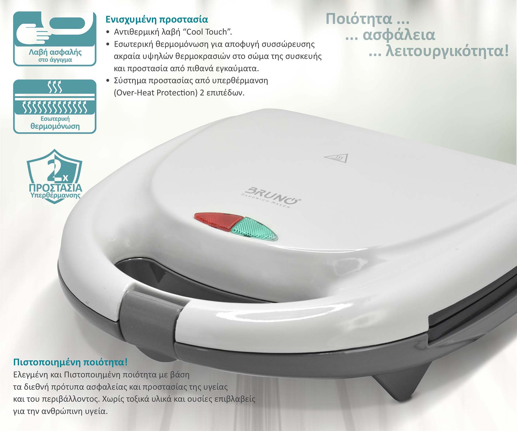 BRUNO τοστιέρα BRN-0166, 2 θέσεων, 800W, αντικολλητικές πλάκες, λευκή