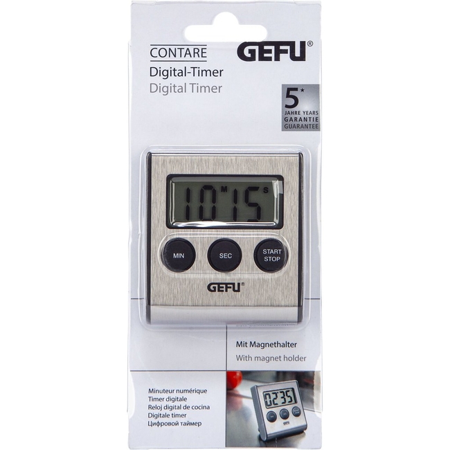 The Gefu Digital Kitchen Timer "Contare" (Model 12330) is a precise and easy-to-use digital timer designed primarily for home cooking, grilling, roasting, and baking with professional-level accuracy.