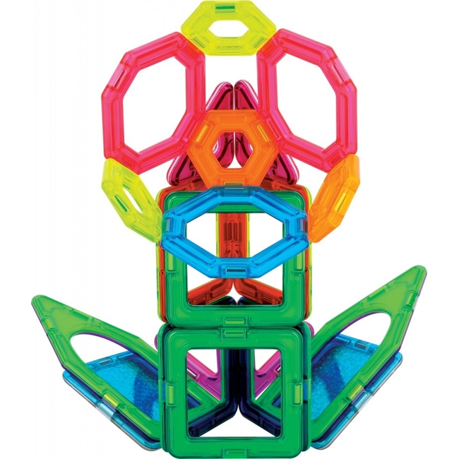 - Variety of Shapes: The set includes 4 triangles, 6 squares, 4 mini hexagons, 4 mini octagons, 2 pentagon arches, 2 hologram tiles, and 2 jungle tree shapes. This diverse assortment allows for intricate constructions.