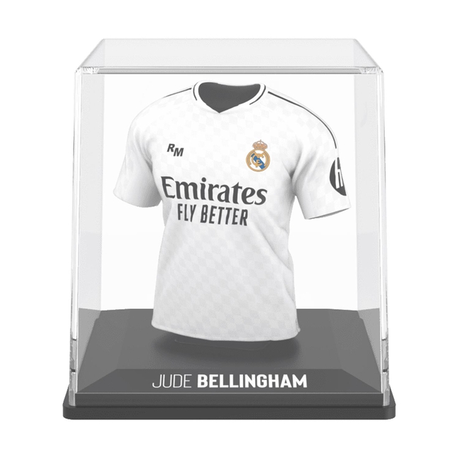 The product FanCollex: MyJersey - Real Madrid Home 24/25 Bellingham (45MY00003) is an officially licensed collectible figure representing Jude Bellingham, a midfielder of Real Madrid for the 2024/2025 season. This figure is crafted from vinyl, acrylic, and biodegradable plastic, ensuring durability and eco-friendliness. Moreover, it features integrated Augmented Reality (AR) and NFC technology, enhancing the overall collectible experience.