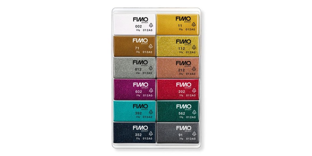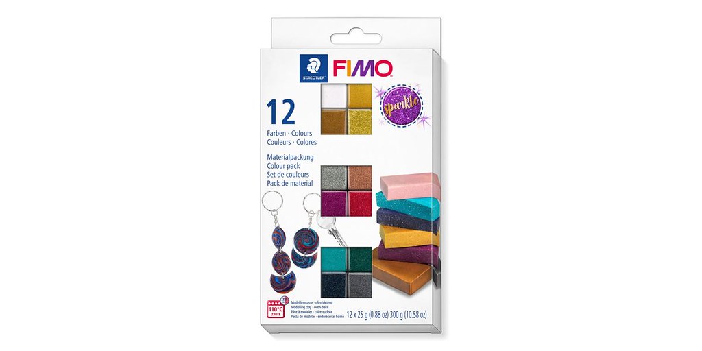 The Fimo Mod.masse Effect Sparkle 12er-Set Glitter is a delightful collection of oven-hardening polymer clay designed by STAEDTLER. This set includes 12 vibrant colors, each offering a unique sparkling glitter effect that brings a mesmerizing shine to your creations.