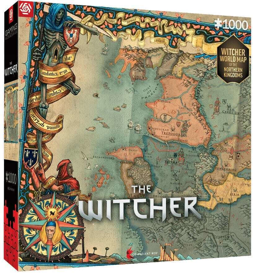 The Good Loot The Witcher: Northern Kingdom Map Jigsaw Puzzle is an exquisite 1000-piece jigsaw puzzle tailored for avid fans of the renowned video game series, The Witcher 3: Wild Hunt. This puzzle promises to deliver a unique and immersive experience that allows enthusiasts to recreate the iconic map of the Northern Kingdoms.
