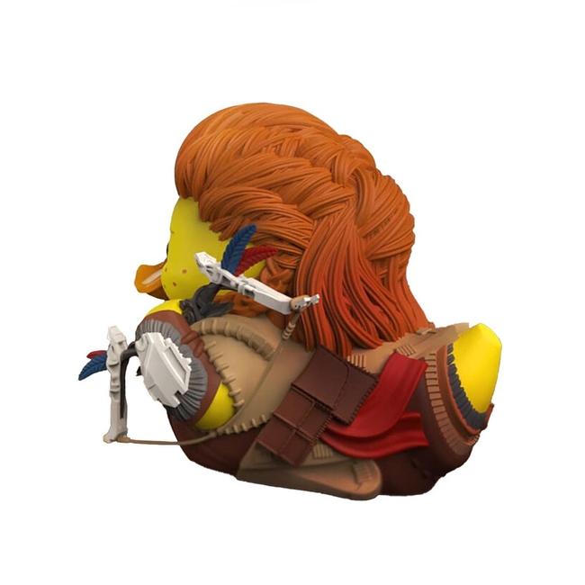 Aloy, the striking and formidable female warrior from the post-apocalyptic world of Horizon, has been perfectly encapsulated in this TUBBZ collectable format. Every last detail of Aloys appearance has been captured with precision, from her distinctive red freckles to her intricately braided hair. The duck wears the chic Nora Anointed outfit from Aloys wardrobe, accompanied by tribal accessories.
