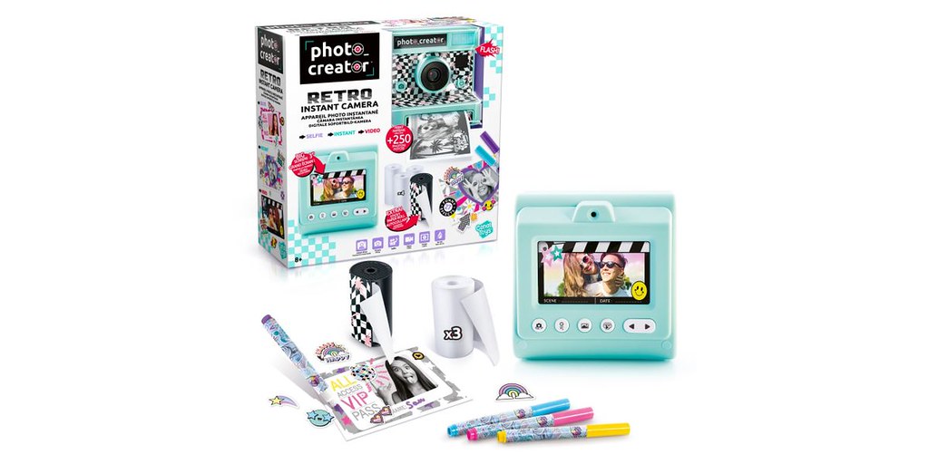 The Canal Toys Retro Instant Camera is a creative and user-friendly digital camera equipped with a thermal printer, perfect for children aged 8 and above. This innovative device combines digital photography technology with the playful feature of instant printing, allowing kids to capture photos and videos and print them immediately, without waiting for drying.