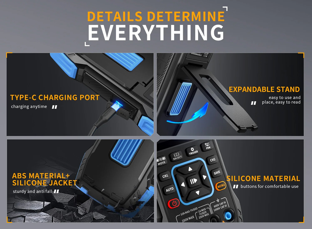 Παλμογράφος Fnirsi 3 σε 1 Πολύμετρο/Signal Generator 2C53T, Επαναφορτιζόμενος