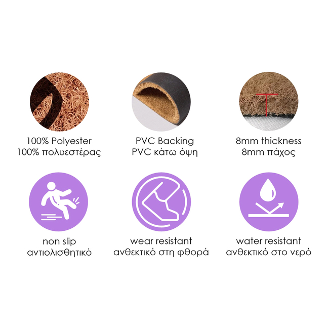Πατάκι HOME USE για είσοδο πόρτας, με αντιολισθητική επιφάνεια, για επιπλέον σταθερότητα. Είναι κατασκευασμένο από πολυεστέρα με PVC επιφάνεια στο κάτω μέρος, που προσφέρουν εξαιρετική αντοχή στη φθορά και το νερό.