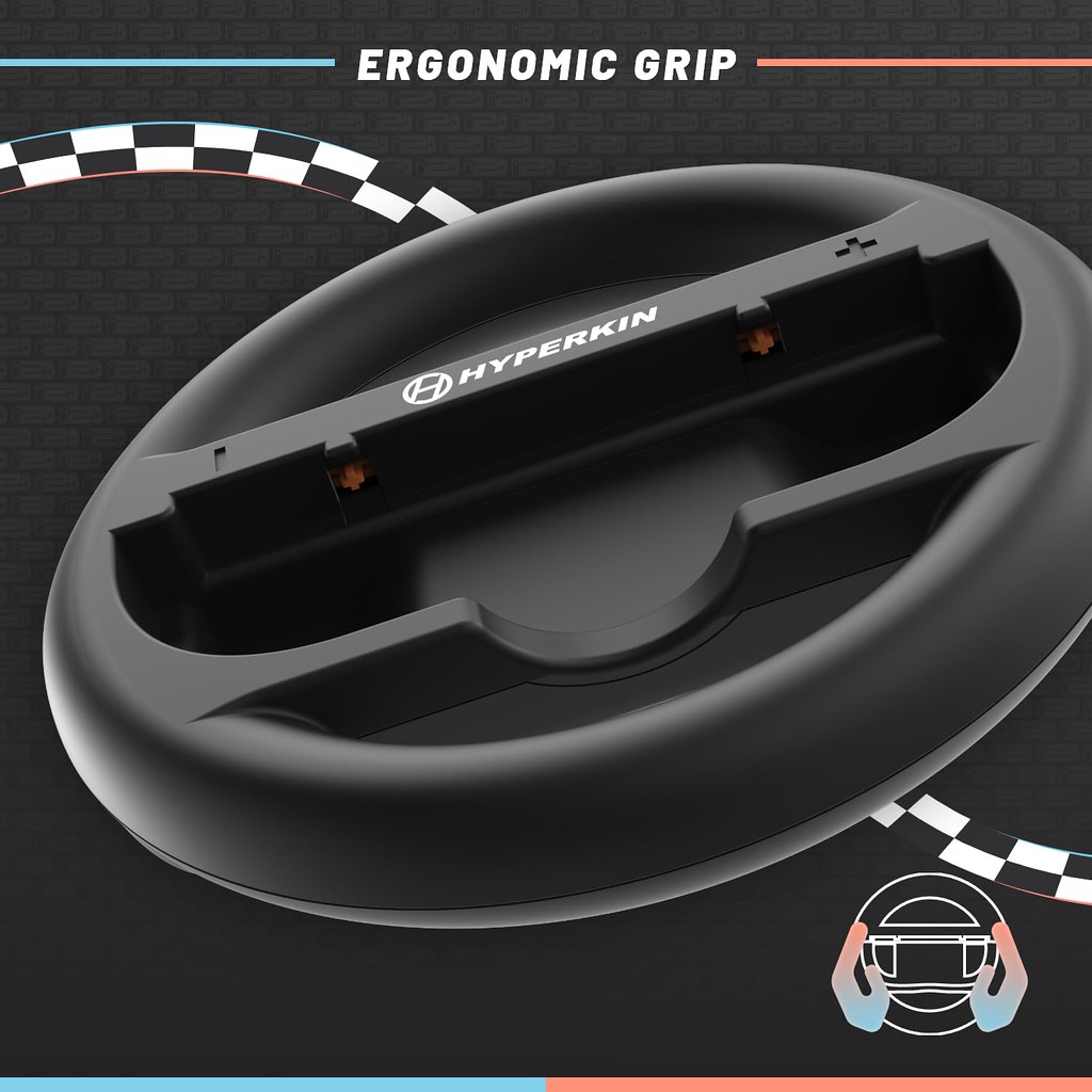 The Hyperkin Racing Steering Wheel Armor3 Black Switch2 is designed to enhance your racing experience on the Nintendo Switch 2. Providing a secure and ergonomic fit for your Joy-Con controllers, these specialized attachments are a must-have for racing enthusiasts.