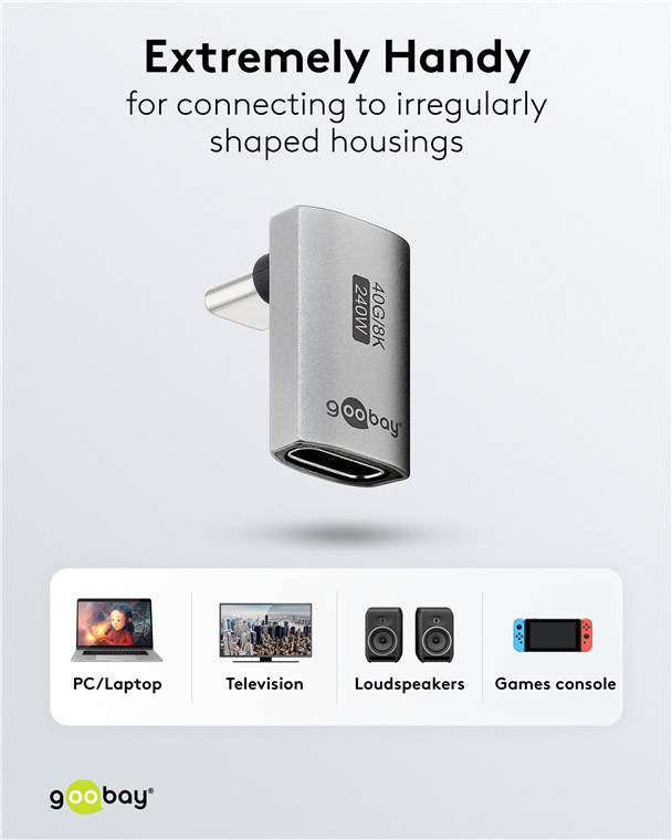 Αντάπτορας USB-C Goobay 74442, Γωνιακός 90°, Usb4, 240W, 40Gbps, 8K, Γκρι