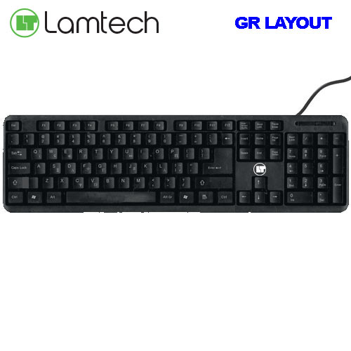 Κανονικό, κλασικό πληκτρολόγιο, USB, GR, μαύρο χρώμα, μαύρο καλώδιο, με oil printing γράμματα πάνω στα πλήκτρα
