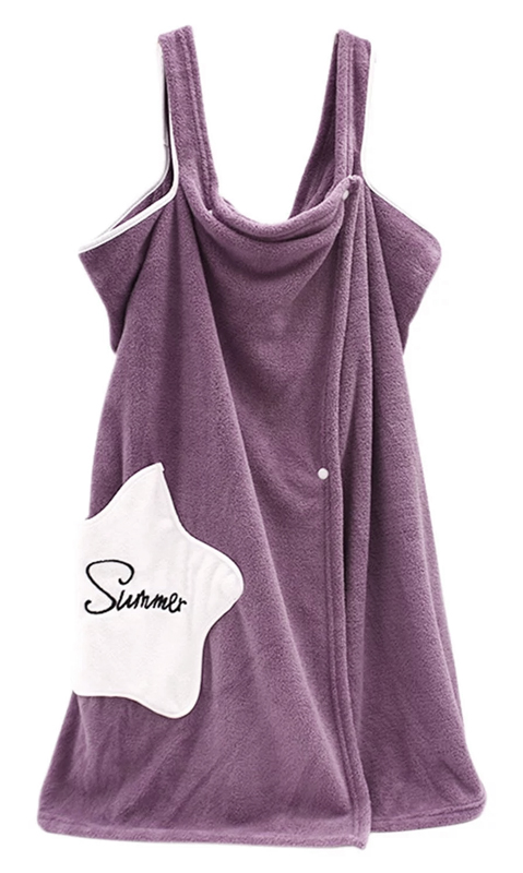 Γυναικεία πετσέτα σώματος κατασκευασμένη από εξαιρετικά υδροαπορροφητικό υλικό και με απαλή ύφη. Διαθέτει έξυπνο σχεδιασμό με οπές μέσω των οποίων μπορούν να περάσουν τα χεριά και κουμπώματα για να μπορεί να φορεθεί σαν μπουρνούζι.