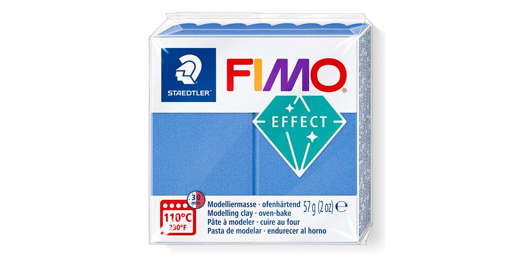 This clay is part of the renowned Fimo Effect range, celebrated for its ability to produce sophisticated effects such as metallic, glitter, stone, and more. The Blue Metallic variant (Color No. 31) delivers a vibrant, shimmering blue hue with a realistic metallic sheen, making it ideal for jewelry, decorative items, and artistic modeling.