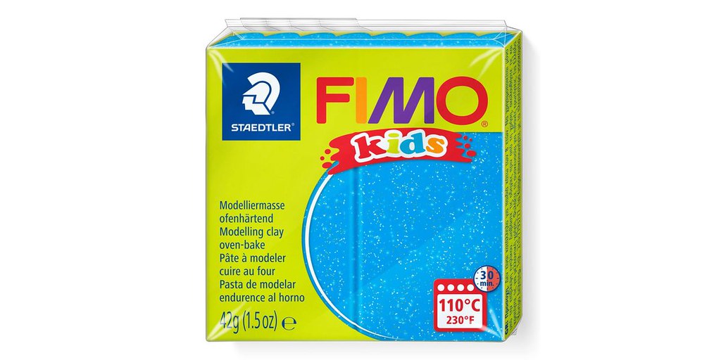 The product Fimo Mod.masse Fimo kids Blue glitter is an oven-hardening modeling clay specifically designed for children, produced by STAEDTLER. This product is part of the FIMO Kids line, known for its softness and ease of shaping, encouraging creativity and enhancing fine motor skills.