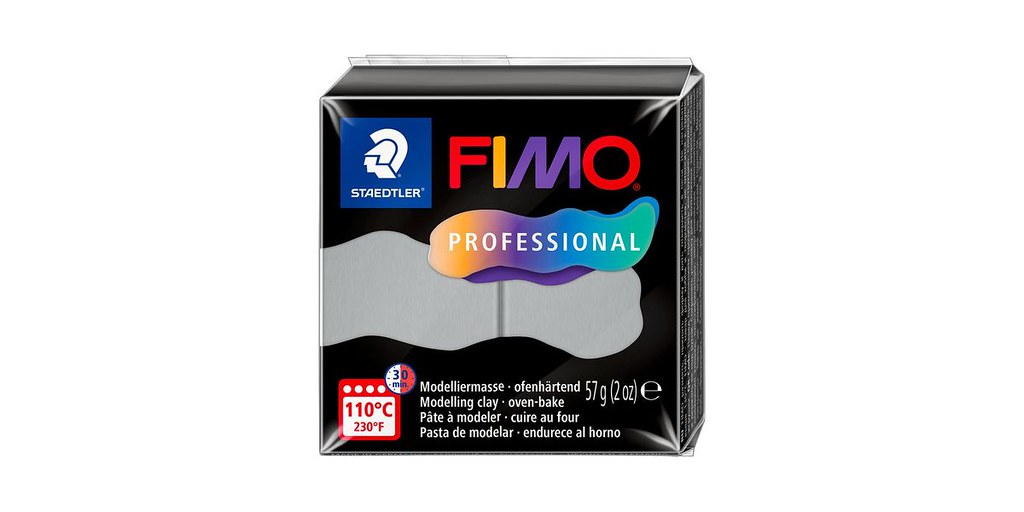 The Fimo Mod.masse Fimo prof 57g dolphin grey (STAEDTLER FIMO Professional 8040-80) is a premium polymer modeling clay designed specifically for artists and advanced users. This high-quality clay comes in a convenient 57-gram block of dolphin grey color, making it an ideal choice for professional artistic creations.