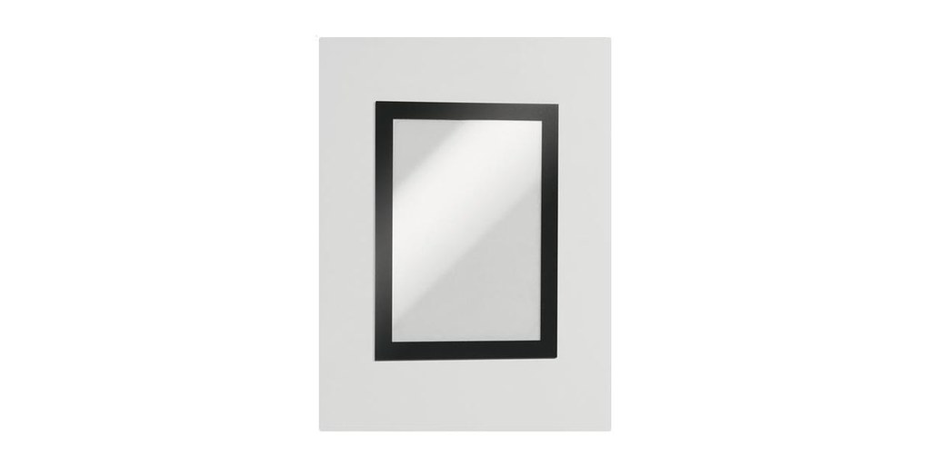 The DURABLE Inforahmen Duraframe A5 selbstklebend 2 St schwarz is ideal for professional presentations of A5 documents. This product comes in packs of two, designed for easy document insertion and replacement with a hinged magnetic front.