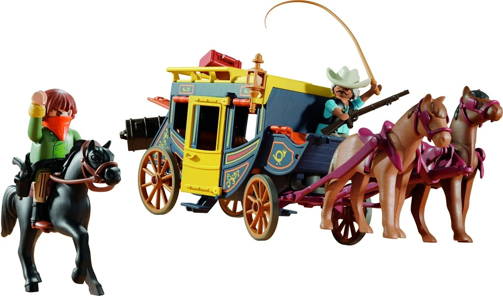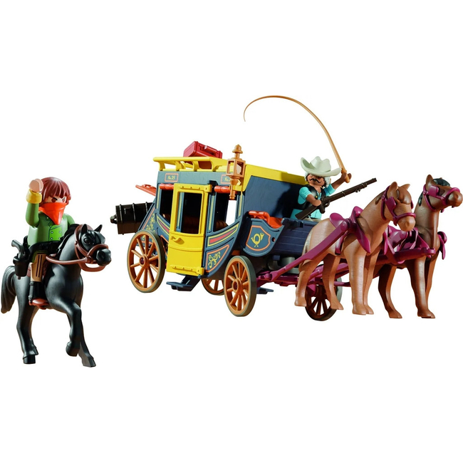 The Playmobil History 71862 Wild West Stagecoach Robbery is an exciting playset that transports children to the adventurous world of the American Wild West. Within this thrilling set, a stagecoach faces an unexpected attack by a masked bandit, allowing for endless imaginative play.