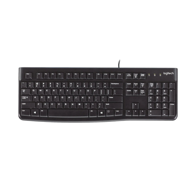 The Logitech K120 Wired Keyboard FR (French AZERTY layout), model 920-002488, is designed for both durability and comfort. This USB keyboard ensures ease of use with its reliable features. It is equipped with a full-size standard layout incorporating low-profile, whisper-quiet keys, which creates a pleasant typing experience with minimal noise.