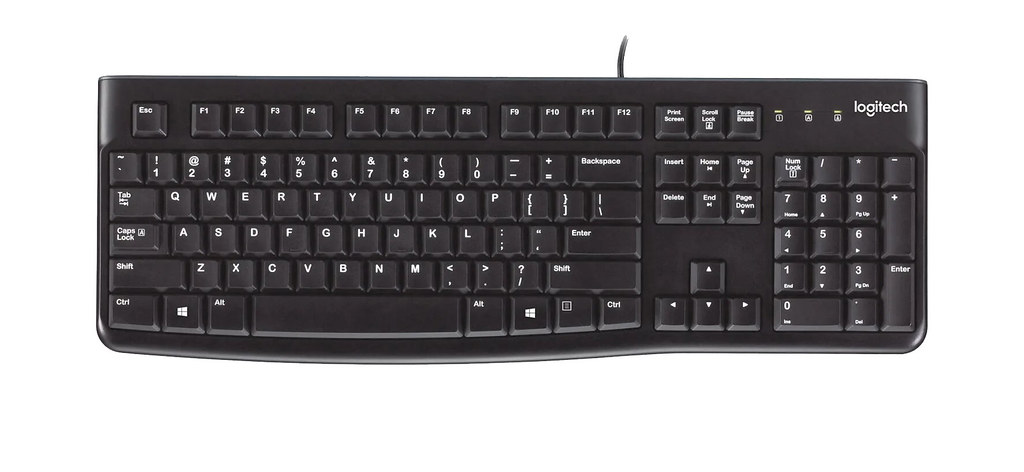 - Adjustable tilt legs, quiet low-profile keys, full F-key row, numeric keypad