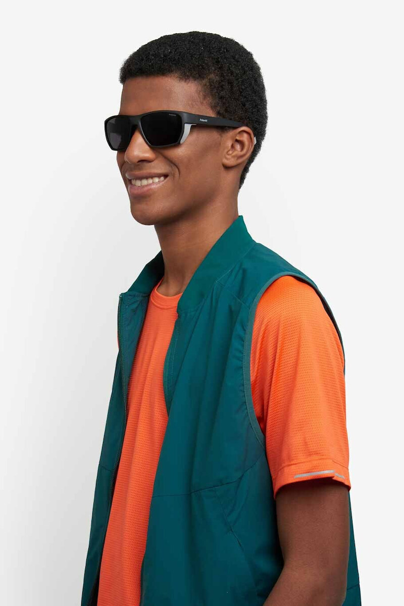 Polaroid Ανδρικά Γυαλιά Ηλίου με Μαύρο Κοκκάλινο Σκελετό και Μαύρο Φακό pld7057/s 003/M9