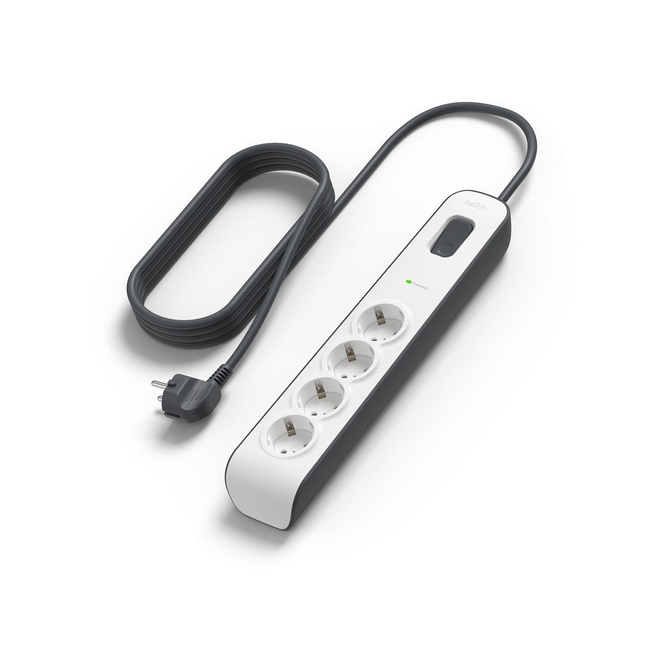 The Belkin Surge Protection Strip with 4 outlets is designed to provide comprehensive protection for your electronic devices from harmful power surges and spikes. With a robust 2-meter power cord, this device is ideal for home-office setups.