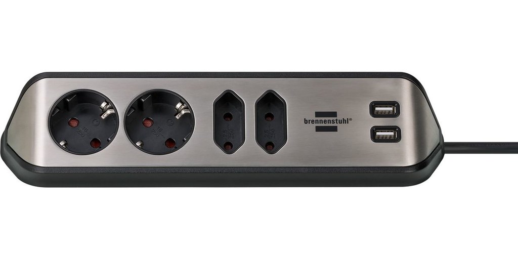 The Brennenstuhl estilo corner strip 4fach with USB Black is a remarkable power solution designed for convenience and efficiency. Featuring four socket outlets and two USB charging ports, this power strip is perfect for both home and office use.