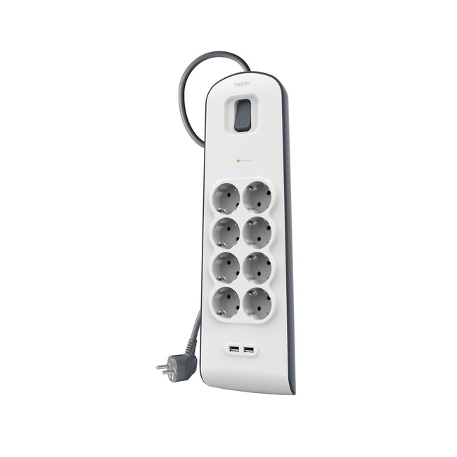 The Belkin Steckdosenleiste 8-fach 2 Meter Netzkabel is a state-of-the-art surge protection strip aimed at ensuring the safety of your electronic devices. With eight outlets and two integrated USB-A ports, it is particularly well-suited for various environments such as home theaters and offices.