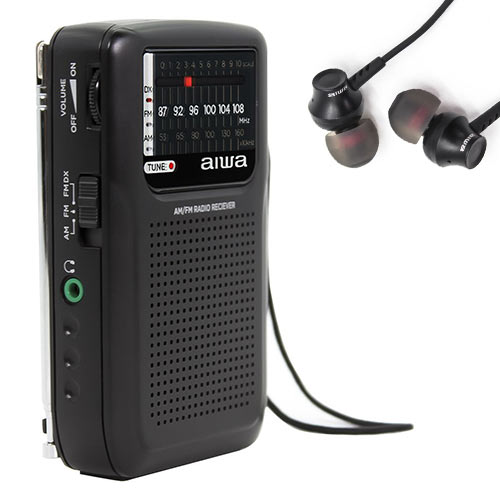 Portable Radio AIWA Pocket Radio with Earphones Black