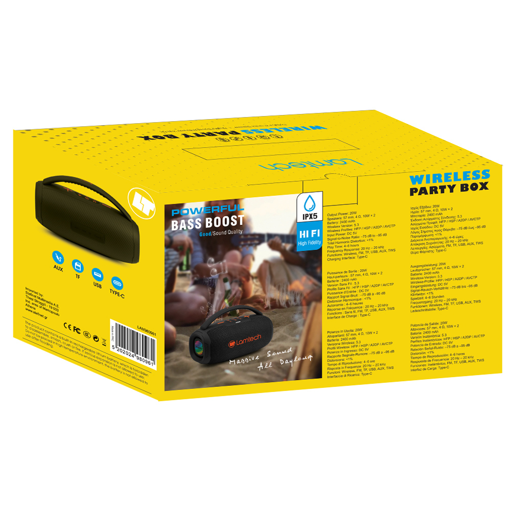 Portable Speakers LAMTECH Wireless V5.3 Bass Boost Party Box 20W Black Orange