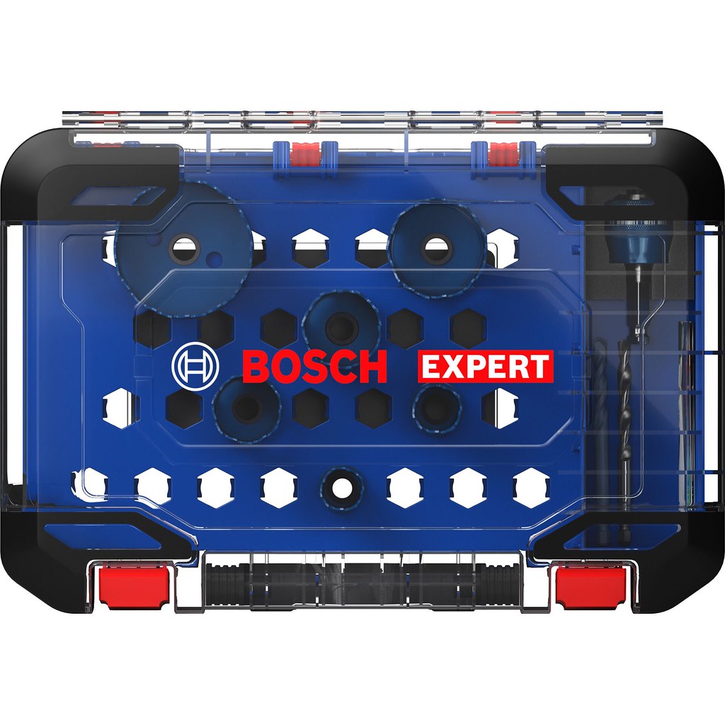 The Bosch ToughMaterial-Set 9-part EXPERT is an exceptional tool developed for resilience and accuracy when cutting through various tough materials. This set includes nine hole saws, with diameters ranging from 22 mm to 68 mm, making it versatile for many applications.