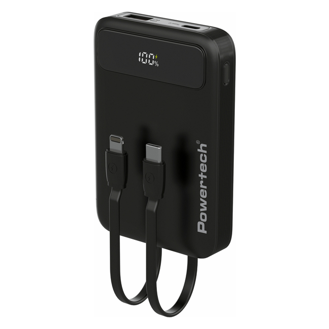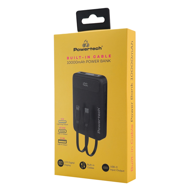 POWERTECH power bank με καλώδια και οθόνη PT-1417 10000mAh, 22.5W, μαύρο