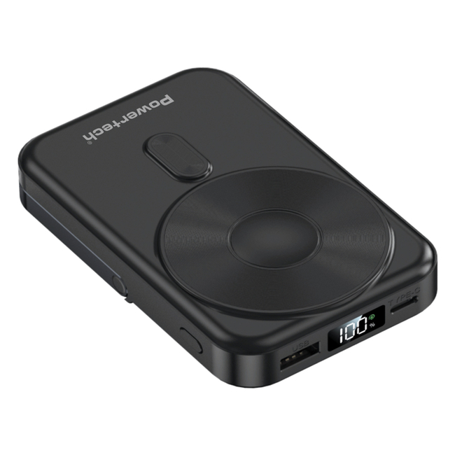 POWERTECH power bank με οθόνη PT-1416, 10000mah, magnetic wireless, 22.5W, μαύρο