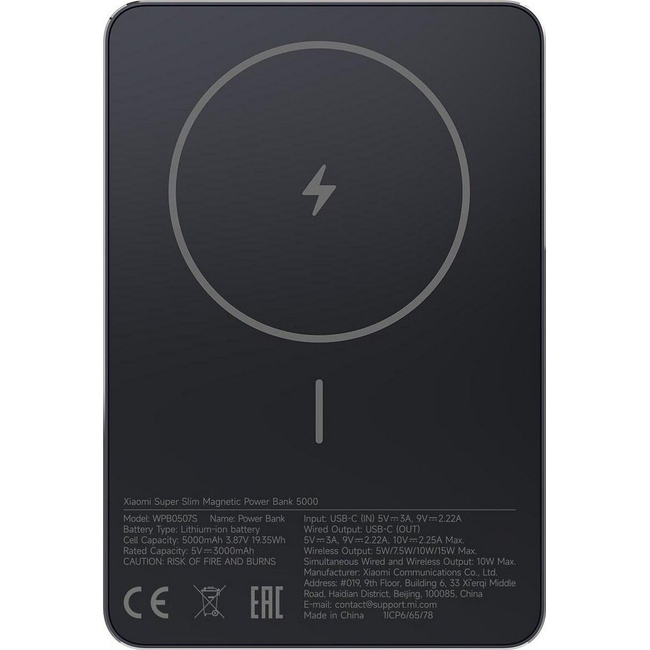 The Xiaomi Super Slim Magnetic Power Bank 5000 in black is your ideal solution for portable charging. Engineered for modern smartphones, this power bank combines an ultra-slim design with impressive functionality.