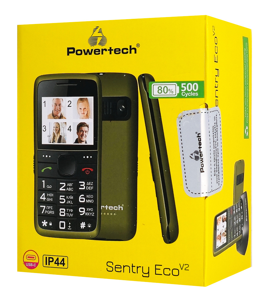 POWERTECH κινητό τηλέφωνο Sentry Eco V2, dual SIM, πλήκτρο SOS, χακί
