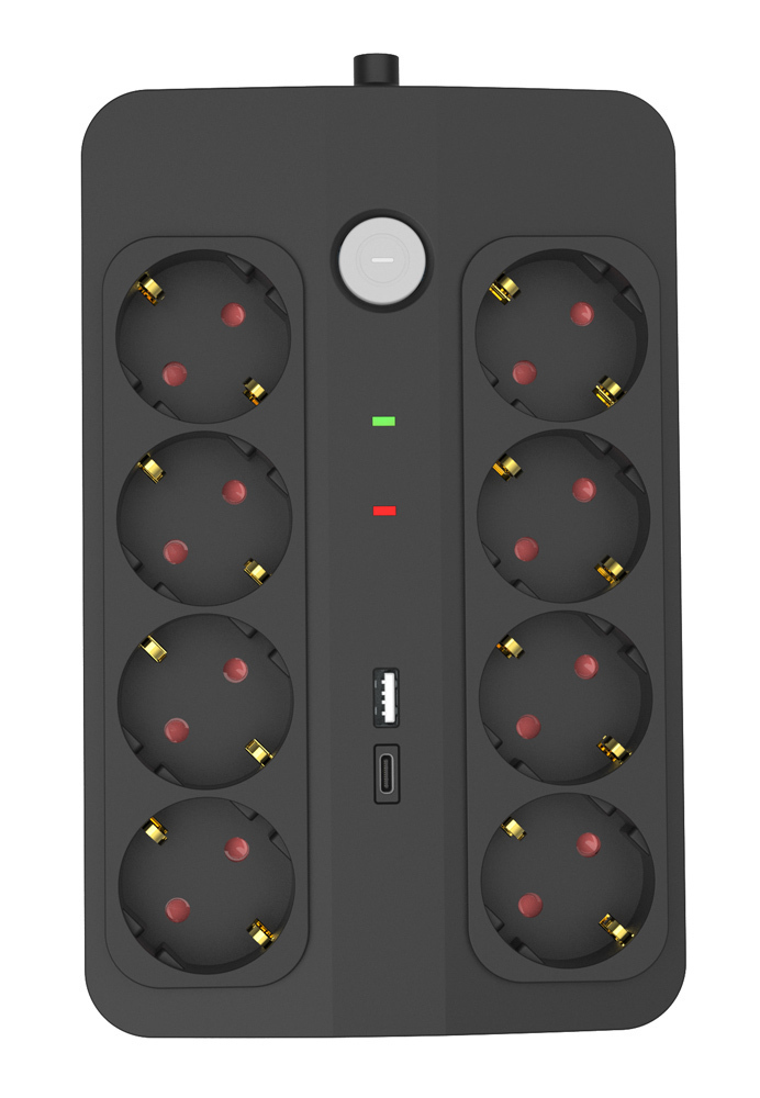 Προστασία από αιφνίδιες αυξομειώσεις τάσης και υπερτάσεις ρεύματος, όπως αυτές που προκαλούνται από κεραυνούς ή προβλήματα του δικτύου. Εξασφαλίζει μεγαλύτερη διάρκεια ζωής και ασφαλή λειτουργία των ηλεκτρονικών σας συσκευών.