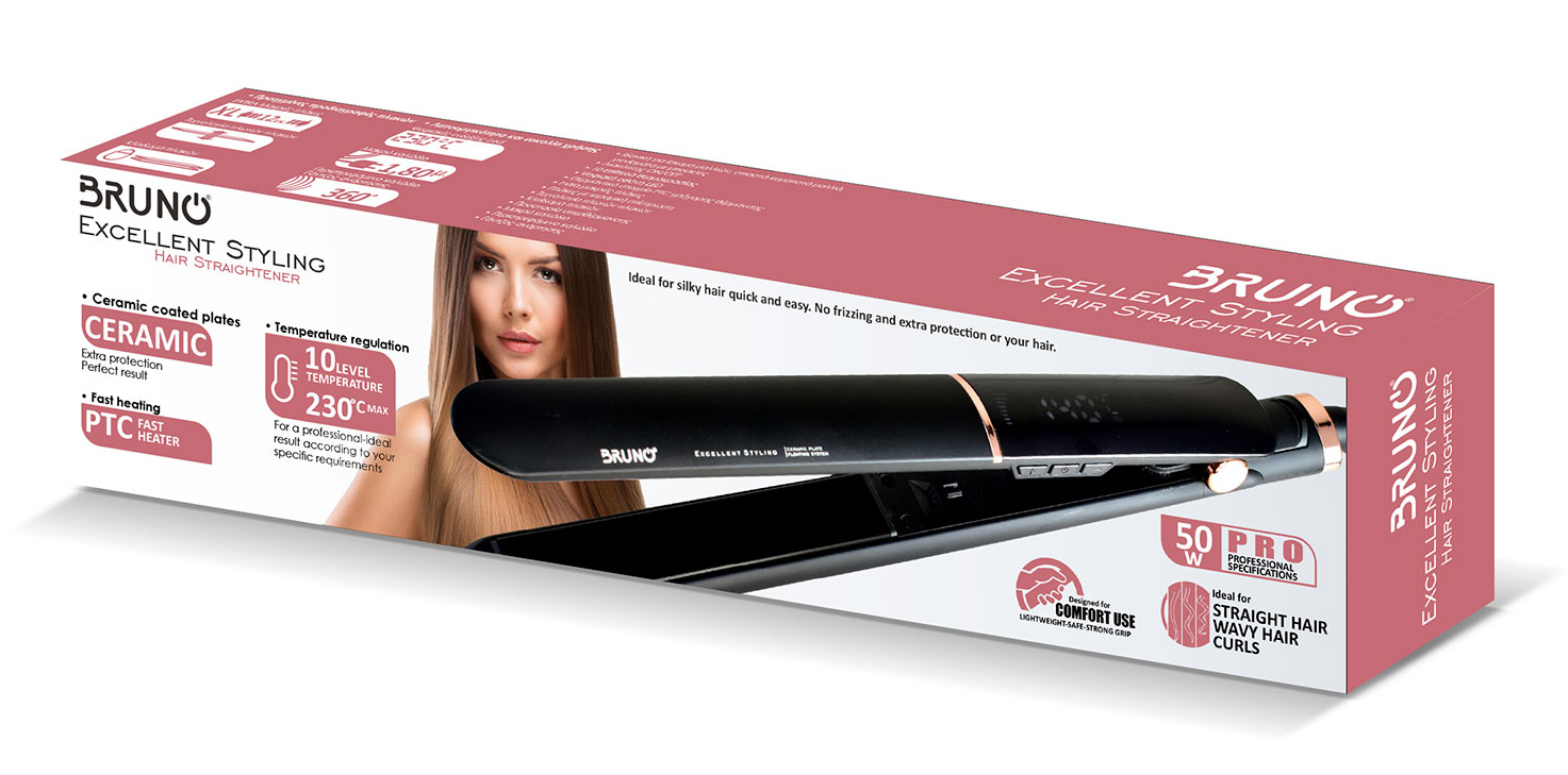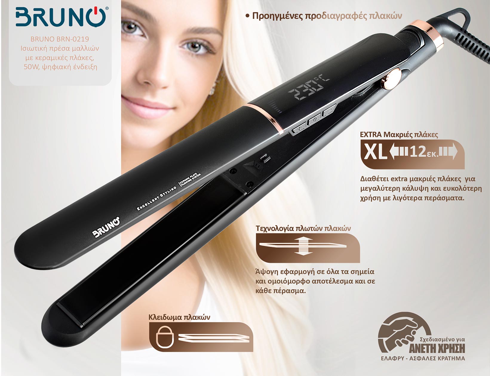 Η ισιωτική πρέσα μαλλιών BRUNO BRN-0219, είναι ιδανική για ίσιωμα μαλλιών και χτενίσματα με σπαστά-κυματιστά μαλλιά ή μπούκλες.