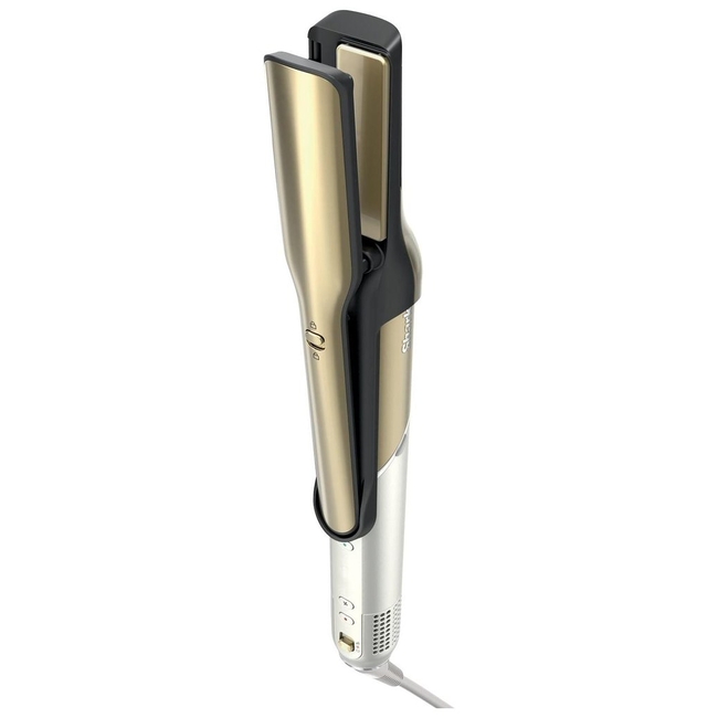 The Shark Glam HD6051SEU 6w1 is an innovative multi-styling hair tool designed to cater to various hairstyling needs. This compact device features a stylish gold body and a tube-shaped design, making it not only functional but also visually appealing.