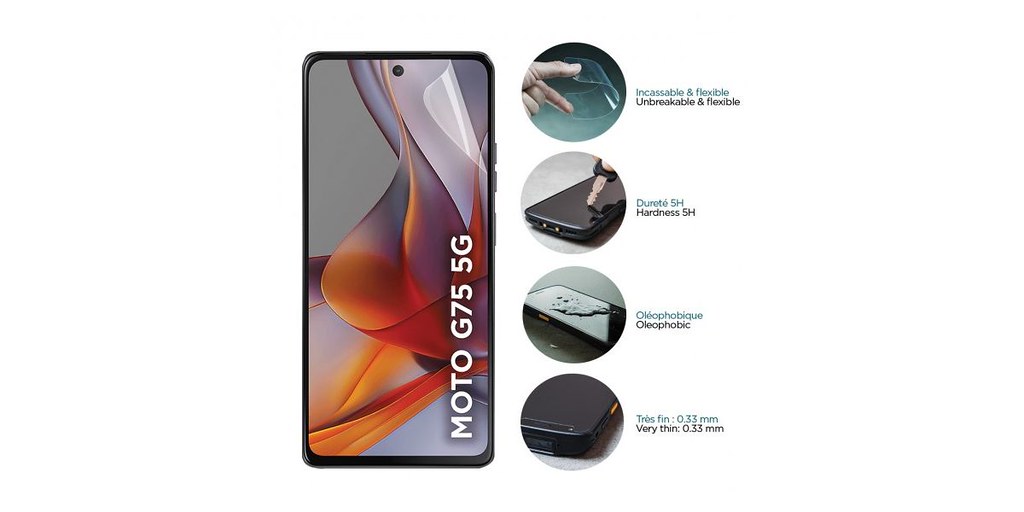 The Mobilis Anti-Shock screen protector is a specialized accessory that enhances the natural durability of the Motorola Moto G75 smartphone, providing superior shock absorption and antimicrobial protection while maintaining a slim profile.