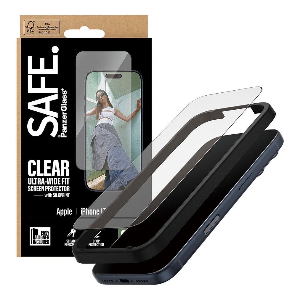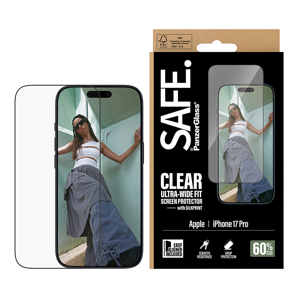 The Panzerglass SAFE. by PanzerGlass Screen Protector w. Black Frame iPhone 17 Pro | Ultra-Wide Fit w. EasyAligner is a premium solution for anyone seeking to protect their iPhone 17 Pro screen. This product is designed to offer exceptional durability and comfort during use.
