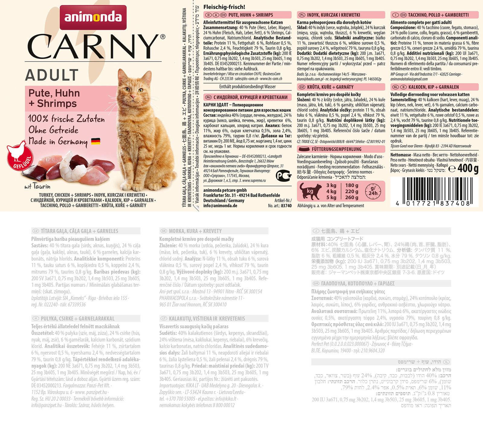 Υγρή Τροφή Γάτας Animonda Carny Adult flavour: turkey. chicken. prawns - wet - 400g