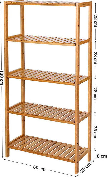 Bathroom Shelf SONGMICS Bamboo 5 Adjustable Shelves 130 x 60 x 26 cm BCB35Y