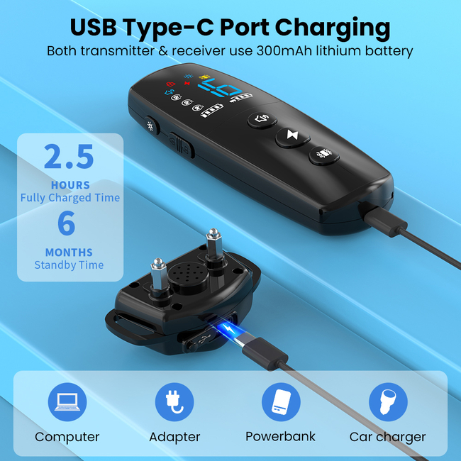 -χωρητικότητα μπαταρίας: κολάρο: 300mAh, χειριστήριο: 300mAh