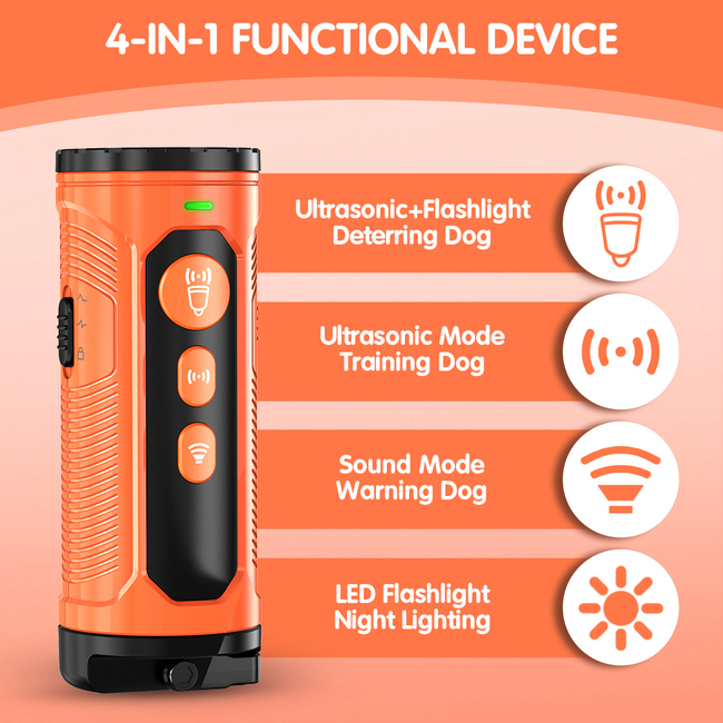 Συσκευή εκπαίδευσης σκύλου με 4 λειτουργίες (ήχος, υπέρηχοι, υπέρηχοι/φως, LED φωτισμός) της Powertech, ιδανική για την εκμάθηση βασικών εντολών σε σκύλους όπως η αποτροπή γαυγίσματος, δαγκώματος κλπ.