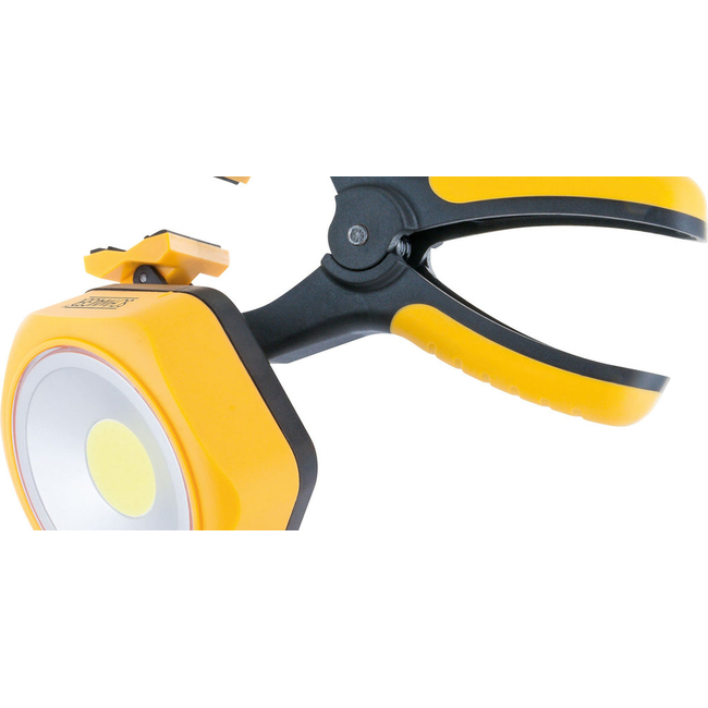 The Schwaiger WLK250 is a portable LED work light equipped with a powerful 3W COB (Chip-on-Board) LED. This innovative design features two main components: the lamp and a removable clamp, making it highly versatile for various tasks.